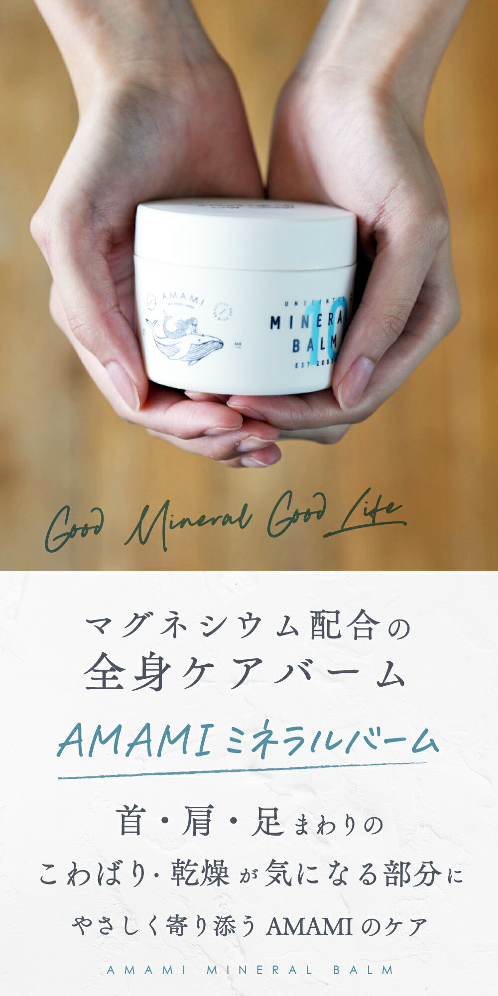 日本の海の恵みをぎゅっと詰め込んだ、AMAMIのミネラルバームが本当に素晴らしいんです!兵庫県赤穂産のマグネシウムと、10種類もの海由来成分が配合されているんですよ。エプソムソルト由来のマグネシウムがたっぷりで、塗るだけで健やかなお肌に導いてくれる感じがします。